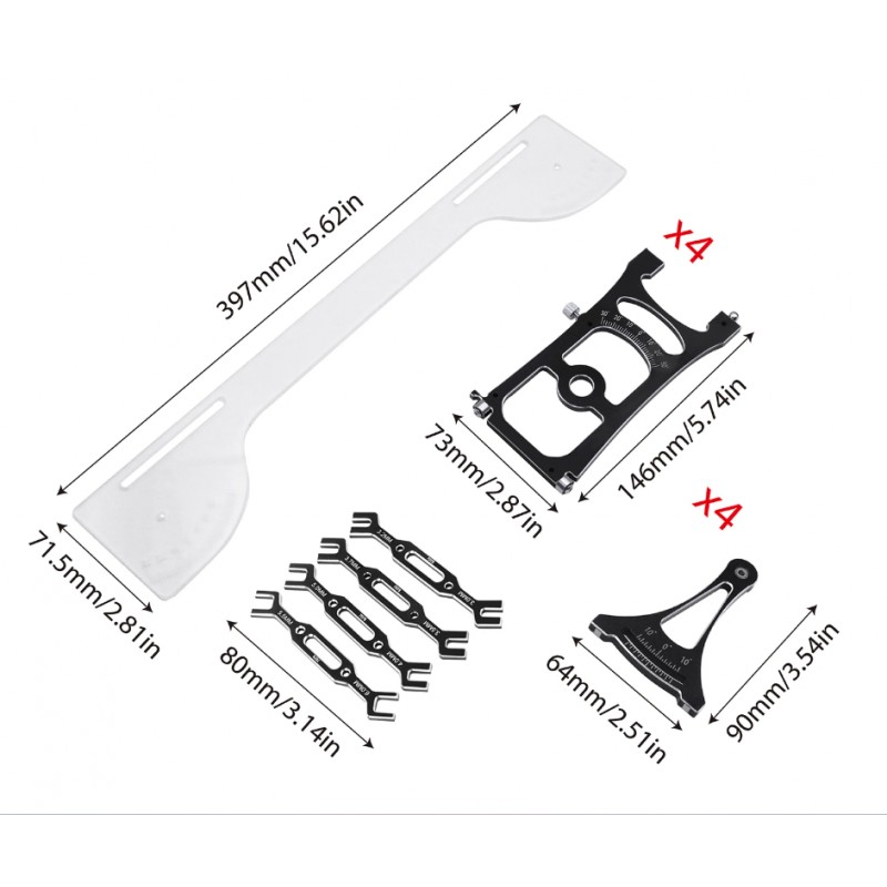 Con este Set puede ajustar y configurar la mayoría de los parámetros importantes de un chasis de coche de escala 1/8.