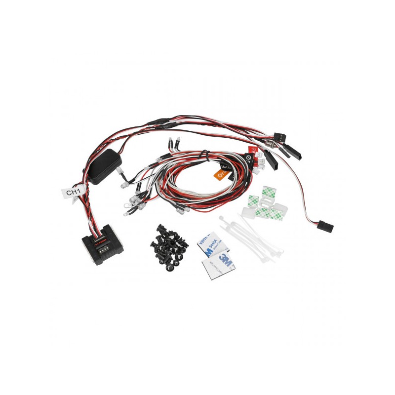 Juego de luces para coches RC con 8 lámparas y 6 configuraciones de parpadeo diferentes.