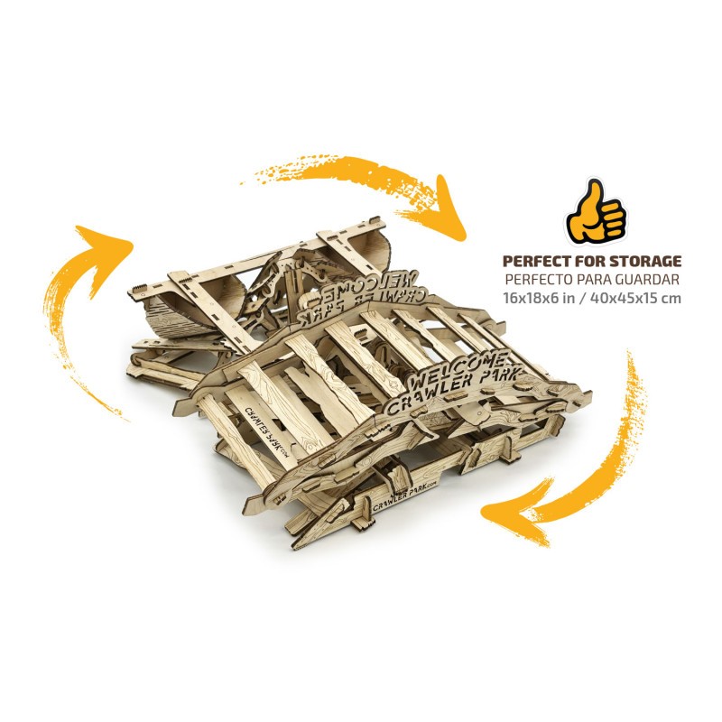 Crawler Park te sorprenderá y desafiará desde el principio. Disfrutarás montando los obstáculos quitando las piezas precortadas del tablero con una ligera presión. Durante el montaje 3D no es necesario utilizar ningún pegamento. Consulta las instrucciones de montaje escaneando el código QR impreso en la caja del producto o visitando nuestra web:www.crawlerpark.com