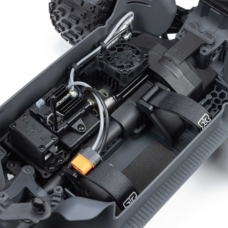 La electrónica Spektrum de alta calidad y resistente al agua está instalada para una conducción sin preocupaciones en cualquier condición. El ESC/Receptor SLT 2 en 1 de 40 A está preparado para LiPo. Para una dirección precisa, ARRMA incluye un potente servo digital de engranaje metálico S661 que produce un par de 125 oz-in a 6V.