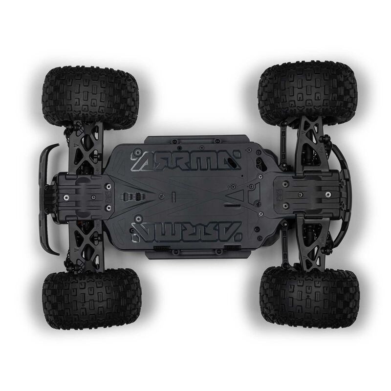 El resistente chasis está ventilado para mantener fríos los componentes de a bordo. Los protectores laterales de mayor tamaño proporcionan la máxima protección contra la suciedad y los residuos. Se incluye una electrónica monocroma sigilosa para darle un buen aspecto, y las correas de la batería se ajustan para aceptar la batería LiPo 2S de caja dura que elija.