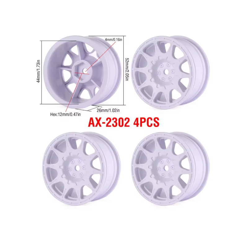 Llantas (4u) 26mm de ancho offset (+4 ) con hexagono standard de arrastre (12mm).