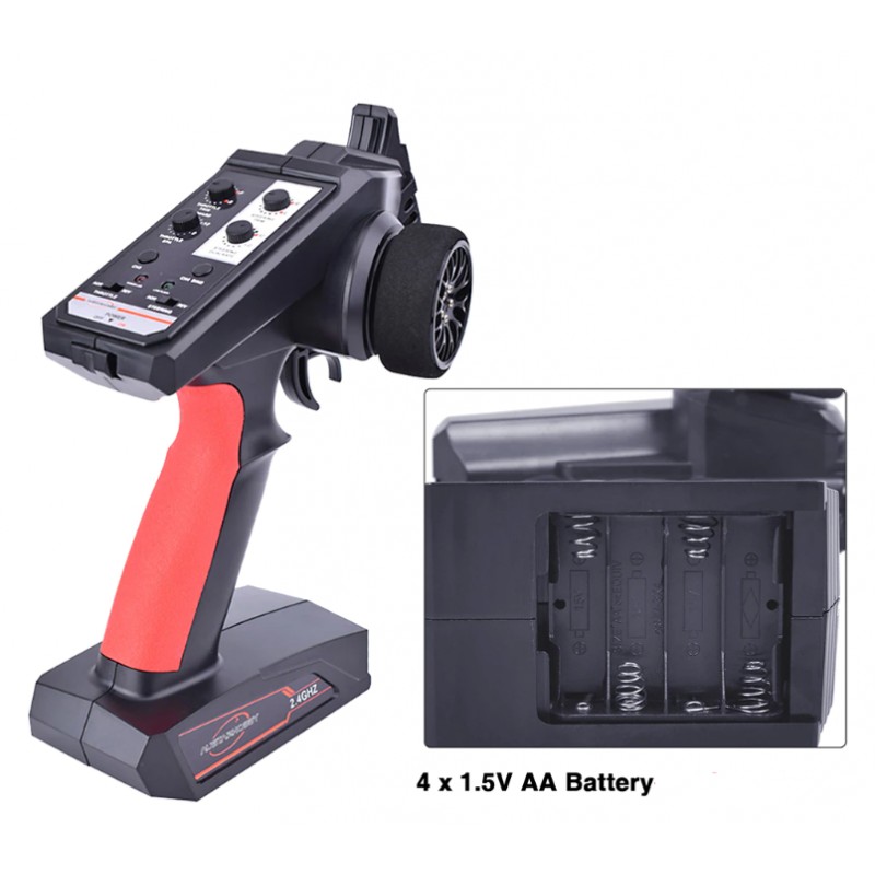 El transmisor funciona con 4 pilas AA (pilas no incluidas).