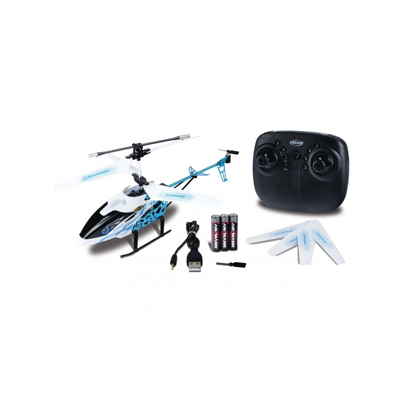 Con el CARSON Easy Tyrann 280 Crash Stop, tu seguridad está garantizada tanto en interiores como en exteriores. Gracias a su sensor de parada de emergencia, el helicóptero teledirigido detecta obstáculos en la parte frontal, se detiene y retrocede entre uno y dos metros. Su robusto chasis de aluminio asegura una excelente estabilidad en el aire. El control automático de altitud permite un vuelo estacionario estable. Además, la función de despegue y aterrizaje automáticos garantiza la máxima seguridad, incluso durante el despegue y el aterrizaje. El botón de parada de emergencia en el mando a distancia proporciona seguridad adicional. El Easy Tyrann 280 Crash Stop incluye todos los accesorios necesarios para su funcionamiento (mando a distancia de 2,4 GHz, batería de vuelo y cable de carga USB) y un juego de rotores de repuesto. ¡Podrás despegar inmediatamente después de la primera carga!