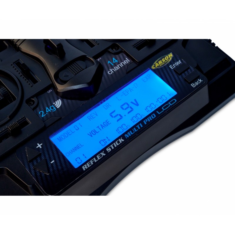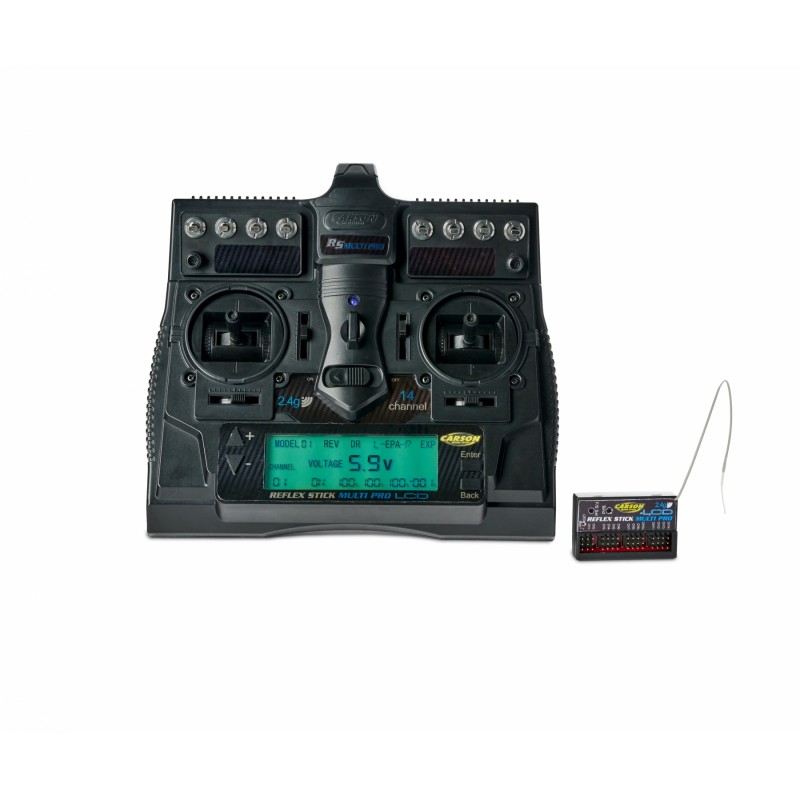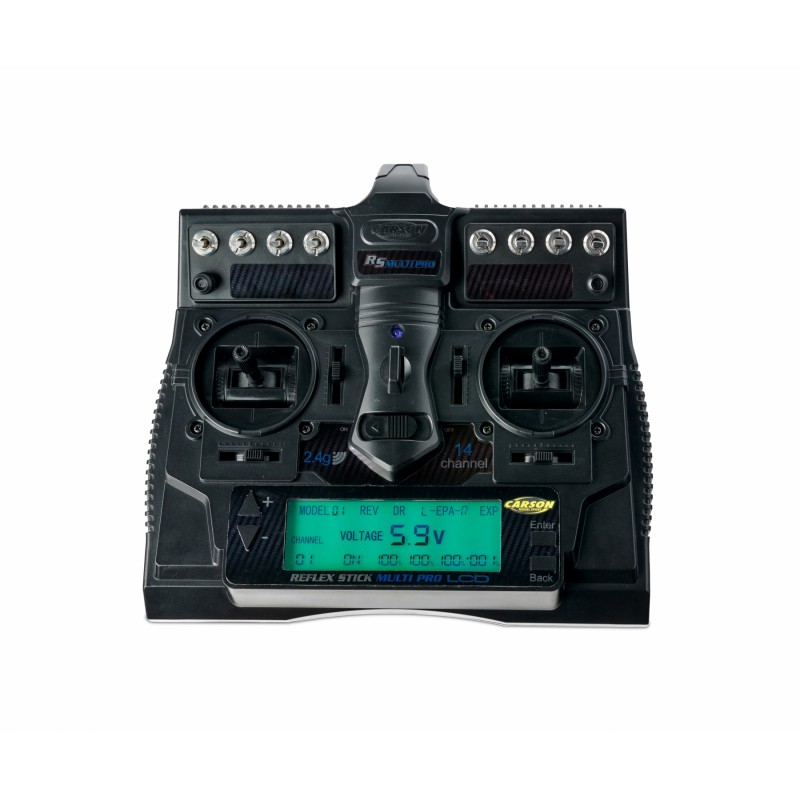 Reflex Stick Multi Pro LCD: sistema de control remoto de 14 canales profesional, moderno y técnicamente de alta calidad con 15 memorias de modelo para uso universal en muchos vehículos y embarcaciones RC.