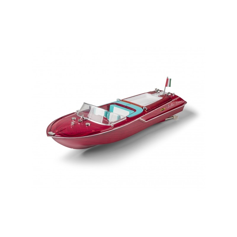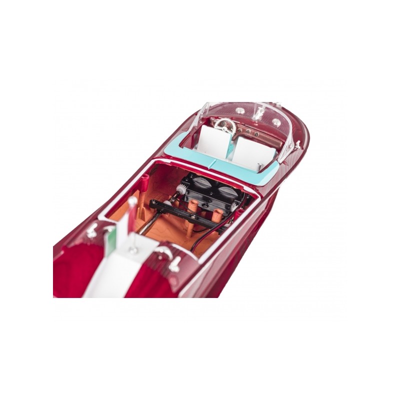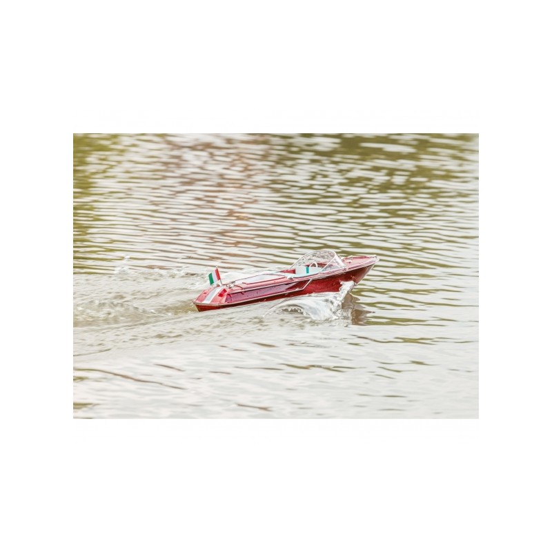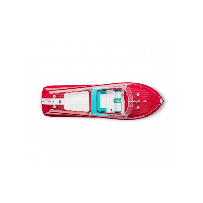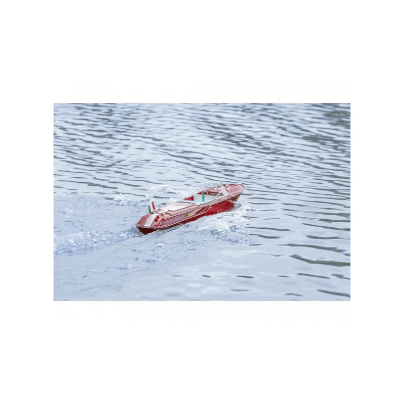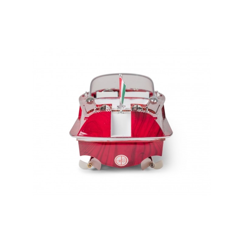 Se desplaza sobre el agua a una velocidad de hasta 10 km/h. Dispone de un propulsor de hélice que, por motivos de seguridad, sólo se pone en marcha cuando la embarcación está en la superficie del agua. El carenado detallado con una atractiva cabina del conductor ofrece suficiente espacio para una figura de juego. El barco de recreo de CARSON evoca una sensación de vacaciones italianas y zarpa inmediatamente gracias a las baterías incluidas.