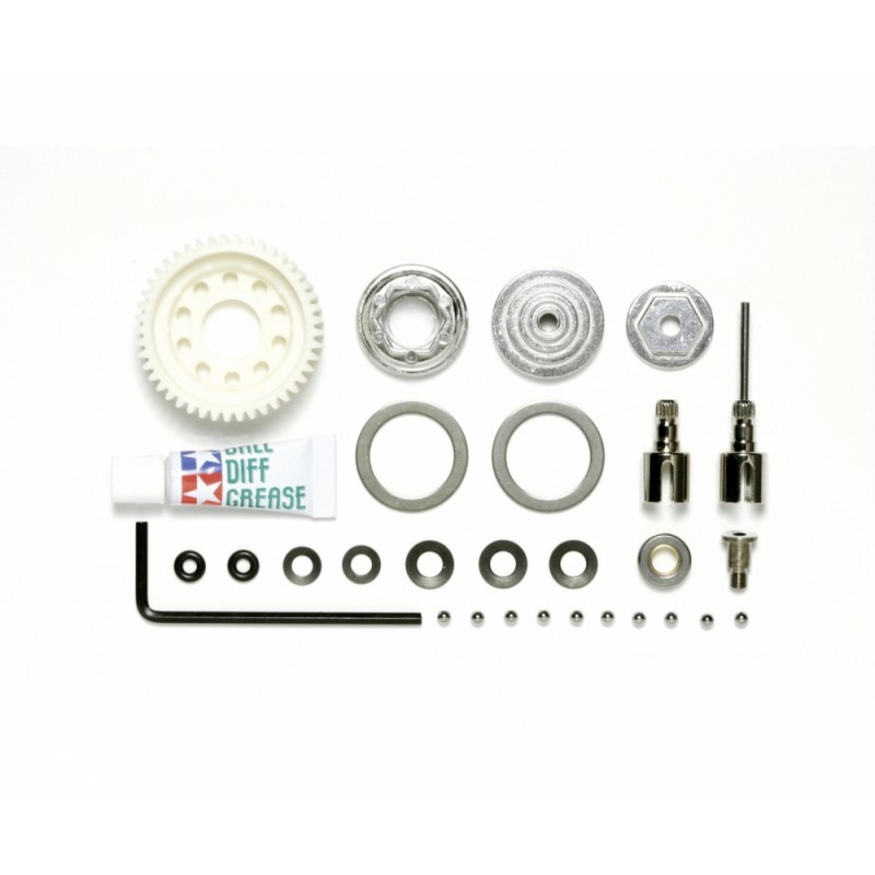 El juego de diferencial de bolas proporciona un efecto de deslizamiento limitado, movilidad y tracción al tiempo que permite tomar curvas a alta velocidad de forma estable. El efecto diferencial también protege los engranajes de daños. El ancho del engranaje se ha reducido de 20 mm a 15 mm, lo que reduce la pérdida por fricción.