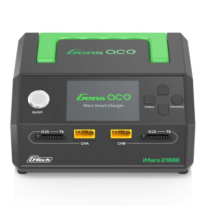 El iMars D1000 es un cargador compacto diseñado para baterías RC LiPo de gran capacidad, ofreciendo hasta 1000W de potencia de carga en AC.