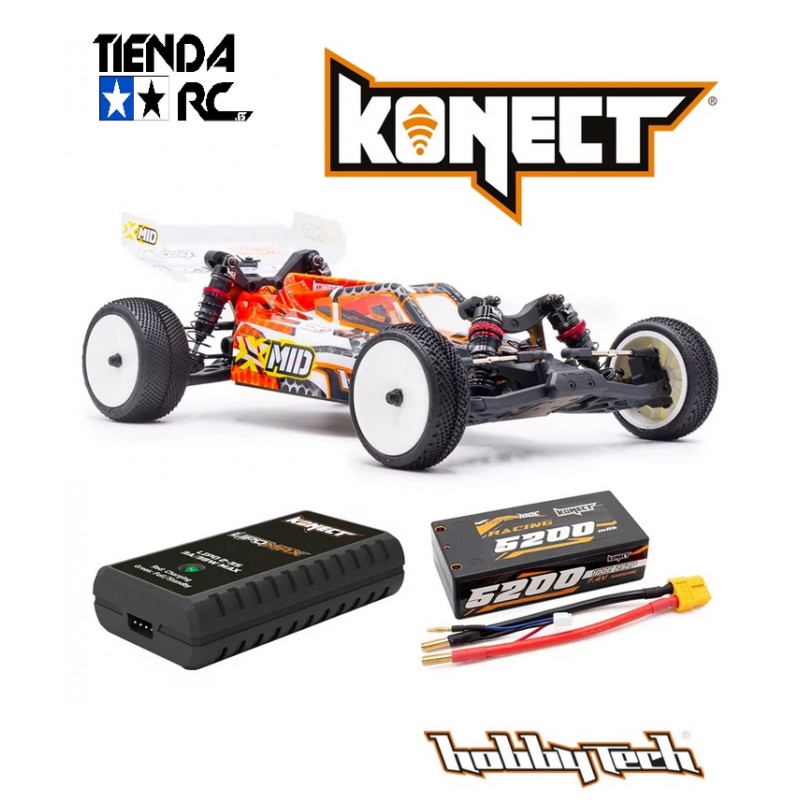 El X-Mid se entrega con un servo Low Profile, un sistema de radio Konect KT3X y neumáticos de competición TZO, lo que lo convierte en un coche de alto rendimiento para cualquier aficionado.