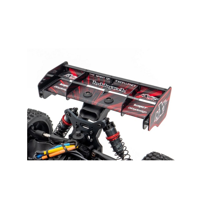 El SPIRIT NXT EVO RR es un buggy eléctrico 1/8 listo para rodar, ideal para el off-road más exigente. Incorpora motor brushless de 2200KV, tracción total, transmisión reforzada, chasis de aluminio T6 y suspensión con piezas en aluminio, ofreciendo velocidad, control y durabilidad. Incluye batería LiPo 4S de 5200mAh y cargador Konect X30. Con diseño agresivo y componentes de alto rendimiento, es la opción perfecta para quienes buscan fiabilidad y potencia desde el primer uso.