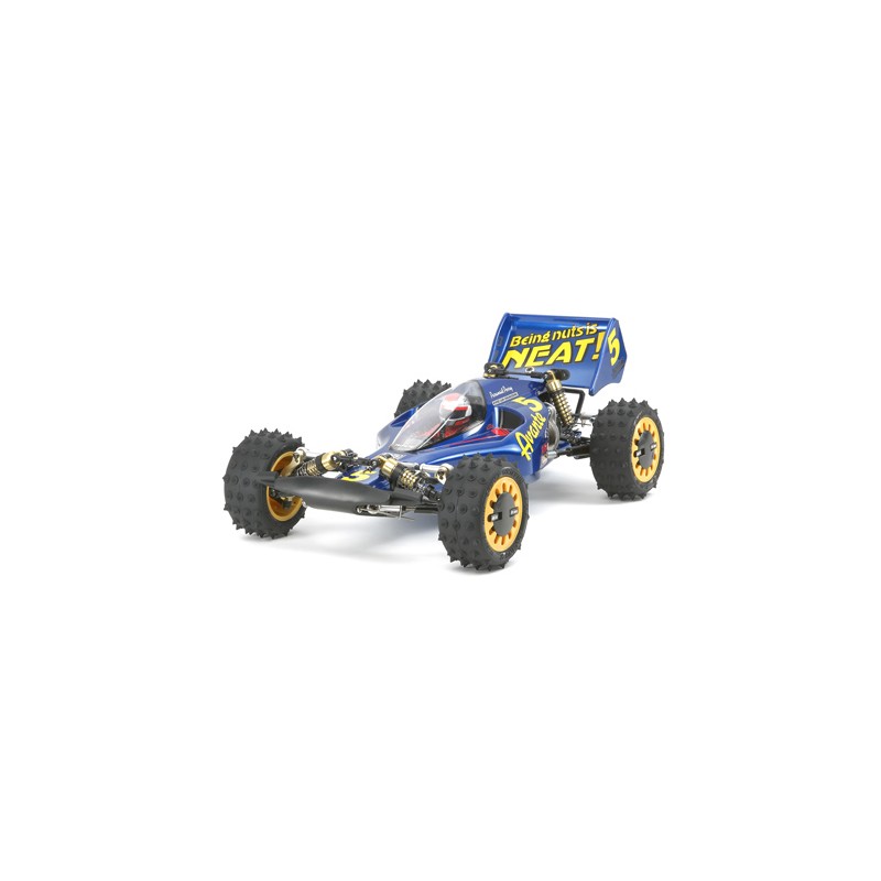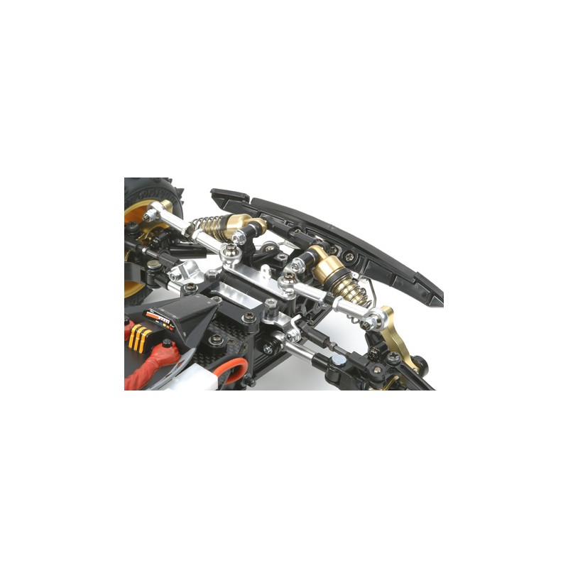 La máquina presentaba un sistema 4WD único accionado por un eje que fue tomado del primer Buggy 4WD R/C de Tamiya, el Hotshot. También presentó un diseño altamente sofisticado que incluye un diseño de chasis de doble piso de FRP, posiciones longitudinales de la batería y del motor, y un cuerpo de tipo fórmula con carenado de chasis. Estaba equipado con componentes innovadores, como una caja de cambios compacta con 3 engranajes planetarios pequeños, un diferencial central para aumentar la estabilidad, una suspensión totalmente ajustable y tapas de rueda con bloqueo de leva.