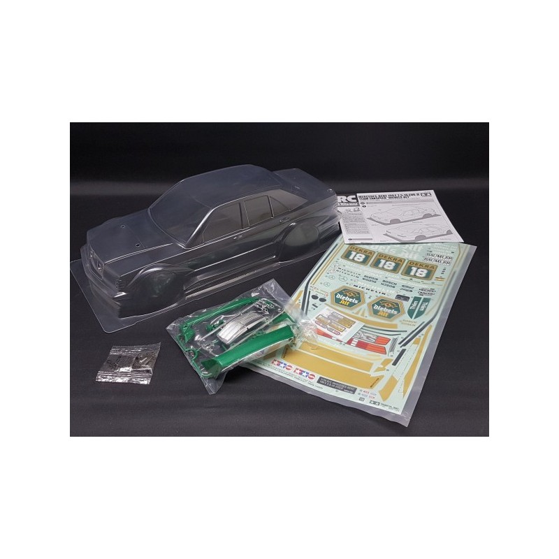 Carroceria Tamiya lexan original sin pintar, el Mercedes Benz 190E del clasico DTM en escala 1:10 en 190 mm de ancho.
