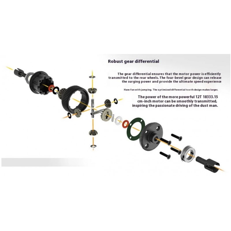 La versión V2 está repleta de características para disfrutar al máximo dondequiera que la conduzcas. Para una velocidad increíble, el motor de 12 vueltas de tamaño 550 con engranajes optimizados es ideal para una aceleración rápida y altas velocidades máximas. Entre las mejoras de durabilidad se incluyen engranajes de transmisión resistentes, piezas de suspensión duraderas y un protector de servo extra resistente.