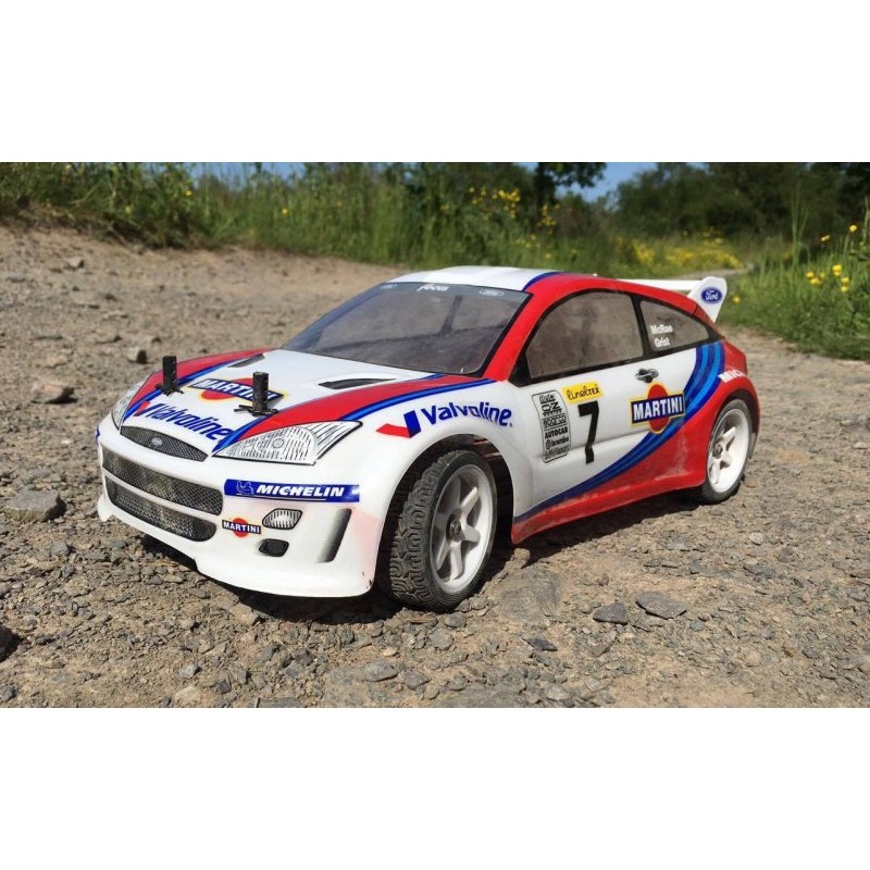 Esta es una réplica con licencia oficial del Ford Focus WRC conducido por Colin McRae en el Campeonato del Mundo de Rallyes. Se suministra transparente con máscara de ventana y hojas de calcomanías para permitirle hacer el automóvil Focus WRC clásico, ¡o puede crear su propia librea!