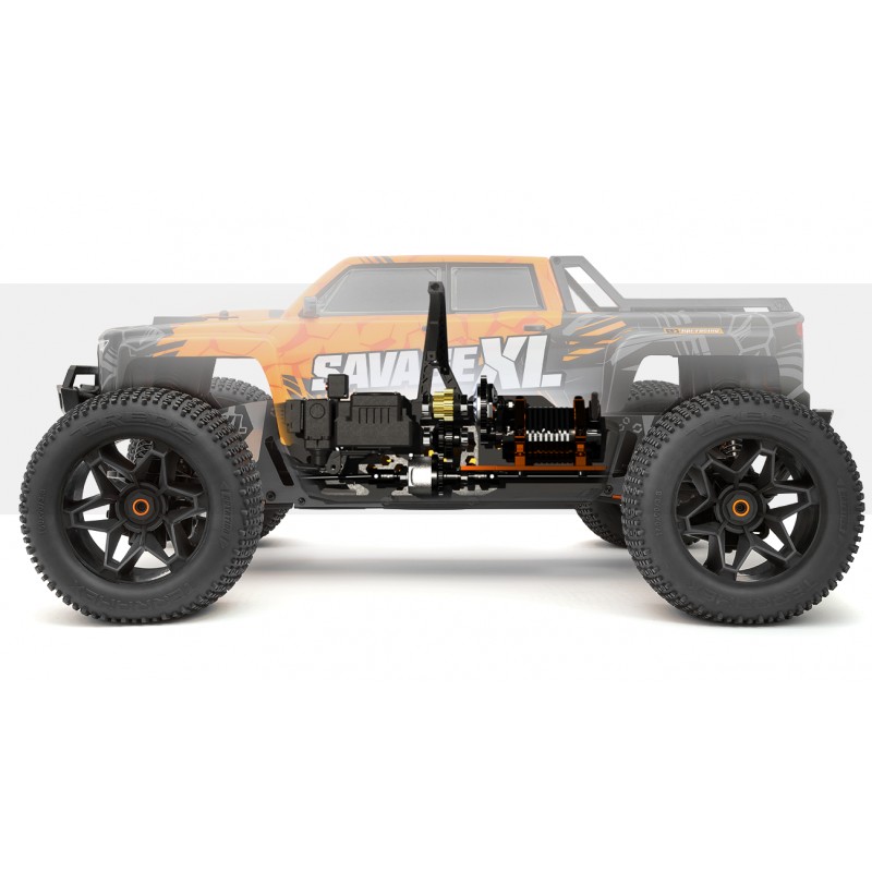 Poder para escupir suciedad con solo tocar el acelerador, además de triturar llantas, poder para destruir el terreno que te hará correr para cubrirte... ¡Los fanáticos de FLUX saben dónde está! Y con una gran cantidad de nuevas características y actualizaciones como el nuevo diseño y disposición del chasis XL LCG, el nuevo soporte de motor de doble abrazadera, las nuevas cajas de batería doble, la nueva placa protectora central XL, el nuevo diferencial central, las nuevas ruedas, neumáticos, carrocería, defensas resistentes y mucho más - Esto es nada menos que: Next Level Savage!!