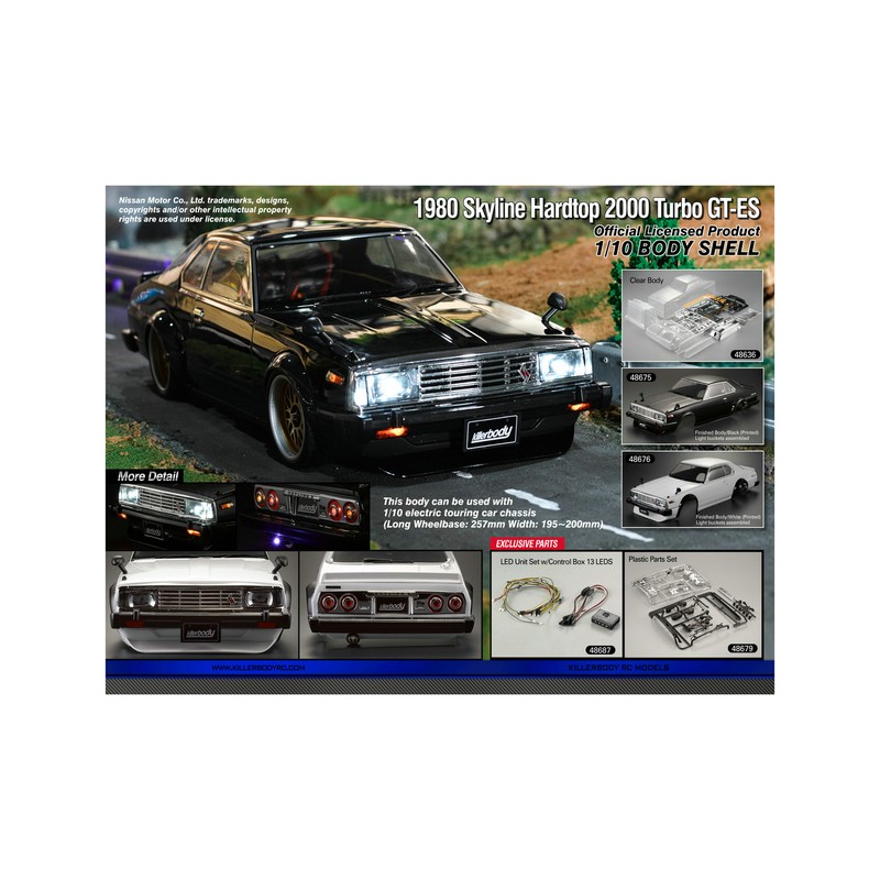 Original de la firma killer body en su bolsa sin estrenar con todos sus accesorios y pegatinas , sirve para chasis de escala 1/10 con una anchura máxima de 195mm y una batalla de 257mm.