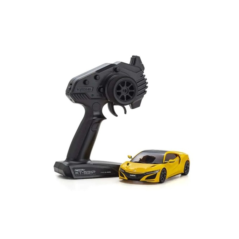 Disfruta de la experiencia completa de las carreras de coches R/C de alto rendimiento nada más sacarlo de la caja; solo tienes que insertar las pilas en el coche y el transmisor. Así de sencillo es el paquete Readyset de Kyosho. El pequeño tamaño del MINI-Z Racer es ideal para conducir en interiores y para personas que se están familiarizando con los coches R/C. Este MINI-Z RWD Readyset incluye un chasis renovado de tracción a las dos ruedas en su núcleo. Los paquetes Readyset anteriores incorporaban el chasis MR-03 de tercera generación, pero el nuevo RWD Readyset incluye el chasis MR-04 de cuarta generación, que se lanzó por primera vez en 2023. Aunque conserva algunos elementos básicos del diseño del MR-03, el nuevo MR-04 demostró su centro de gravedad más bajo y su diseño de dirección remodelado con una velocidad vertiginosa y un excelente manejo en el modelo EVO2 de gama alta. El chasis MR-04 está montado con un sistema R/C y cuenta con una carrocería completa acabada para mostrar el estándar del modelo. Este Readyset incluye el mismo chasis MR-04 estándar que otros modelos MR-04 de gama alta e incluye un motor cepillado de clase 130 fácil de usar y el fiable transmisor Syncro KT-531P con empuñadura de pistola. Solo tienes que insertar 4 pilas alcalinas AAA en el coche y en el transmisor, y ya estás listo para empezar a divertirte. El alto rendimiento viene directamente de la configuración estándar, pero puedes ajustarlo para obtener un rendimiento de élite con una amplia gama de piezas opcionales MINI-Z. Con su acabado de modelo de exhibición de maniobrabilidad dinámica, el chasis MR-04 actualizado lleva la auténtica experiencia R/C a un nivel superior.