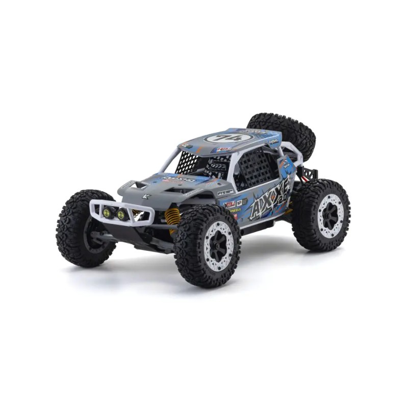 El diseño simple del buggy eléctrico (EP) de la serie EZ a escala 1/10 de Kyosho ofrece la combinación perfecta de manejo, alto rendimiento y asequibilidad. Desde su lanzamiento en 2012, el AXXE de la serie EZ ha sido un popular automóvil de radiocontrol para principiantes y también un excelente segundo automóvil para conductores más experimentados. Siguiendo su excelente diseño básico, el nuevo AXXE 2.0 ha renacido con actualizaciones en sus componentes estándar del sistema de radiocontrol y una carrocería modificada para la compatibilidad con las fuentes de energía modernas. Al igual que su modelo hermano, el Sandmaster, que se renovó en 2023, el AXXE 2.0 ha sufrido algunos cambios en el diseño de su chasis para acomodar varios tipos de baterías y reducir el contacto de la nueva caja de cambios con la superficie de la carretera. El servo de dirección también se ha actualizado a una especificación de alto par de 6 kg que puede soportar cargas pesadas de conducción todoterreno y el controlador de velocidad a prueba de agua (ESC) le permite atravesar charcos sin preocupaciones. Con un nuevo esquema de color de carrocería, el marco de tubos utilizado en los rallyes y carreras de buggies reales combina tubos blancos con elegantes paneles grises y nuevos diseños de calcomanías. ¡Elige entre dos patrones de color de carrocería diferentes de AXXE 2.0! Se vende como un Readyset que incluye carrocería y chasis preensamblado con sistema R/C instalado, todo lo que necesitas para disfrutar de la acción del auto R/C es una batería para el auto, un cargador de batería y baterías para el transmisor. La estructura de diseño simple es fácil de desmontar y volver a ensamblar, lo que es óptimo para el mantenimiento y la puesta a punto.