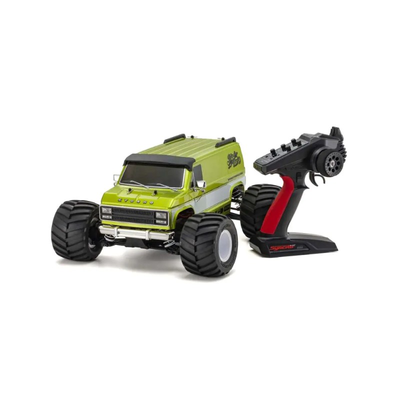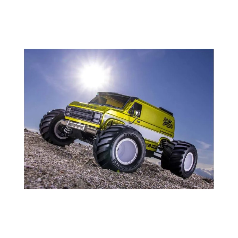 Separate molded parts such as the bumper, grille and side mirrors enhance the scale feel of this 1970’s & 80’s American van motif. A roof guard is also installed.Extra decal sheet included to customize body.