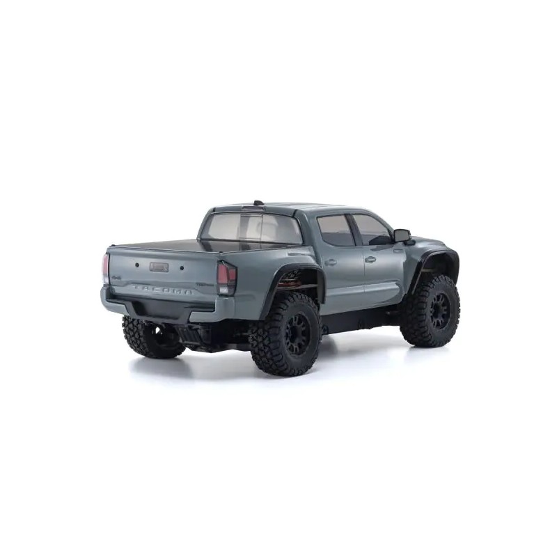 Con neumáticos resistentes y tren de rodaje para manejar terrenos difíciles y una gran plataforma de carga trasera, las camionetas tienen una gran demanda en América del Norte, el sudeste asiático, África y Australia, y muchas camionetas populares se han recreado como modelos R/C. Toyota desarrolló la Tacoma principalmente para el mercado norteamericano y ha seguido vendiéndose bien desde su lanzamiento en 1995. Este modelo se basa en la Tacoma de tercera generación, que apareció por primera vez y fue muy elogiada en 2016 debido a su estilo agresivo y practicidad. La Tacoma TRD Pro tope de gama ha sido recreada por Kyosho con un resistente chasis a escala 1/10 en un paquete Readyset. La artesanía de moldeado de Kyosho reproduce inmaculadamente la carrocería TRD Pro en resina de policarbonato liviana pero rígida con la resistencia para una conducción todoterreno dura. Basado en el chasis todoterreno KB10, la distancia entre ejes larga y la banda de rodadura corta del chasis KB10L combinan perfectamente con la carrocería. El sistema 4WD impulsado por eje transfiere de manera confiable la potencia bruta del motor sin escobillas TORX10L para alcanzar velocidades máximas de aproximadamente 75 km/h bajo la gestión del ESC (control electrónico de velocidad) y una batería lipo 3S (11,1 V) compatible. Este conveniente paquete Readyset contiene la diversión de una camioneta pickup de gran escala sobre un chasis todoterreno dinámico con un acabado similar en calidad a los modelos premium solo con exhibición.