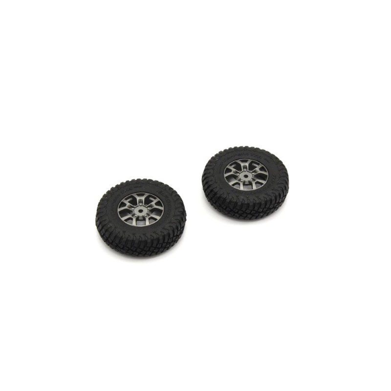 Un par de neumáticos y ruedas preencolados ensamblados con un peso en su interior. El uso en la parte delantera garantiza una excelente tracción para subir colinas.