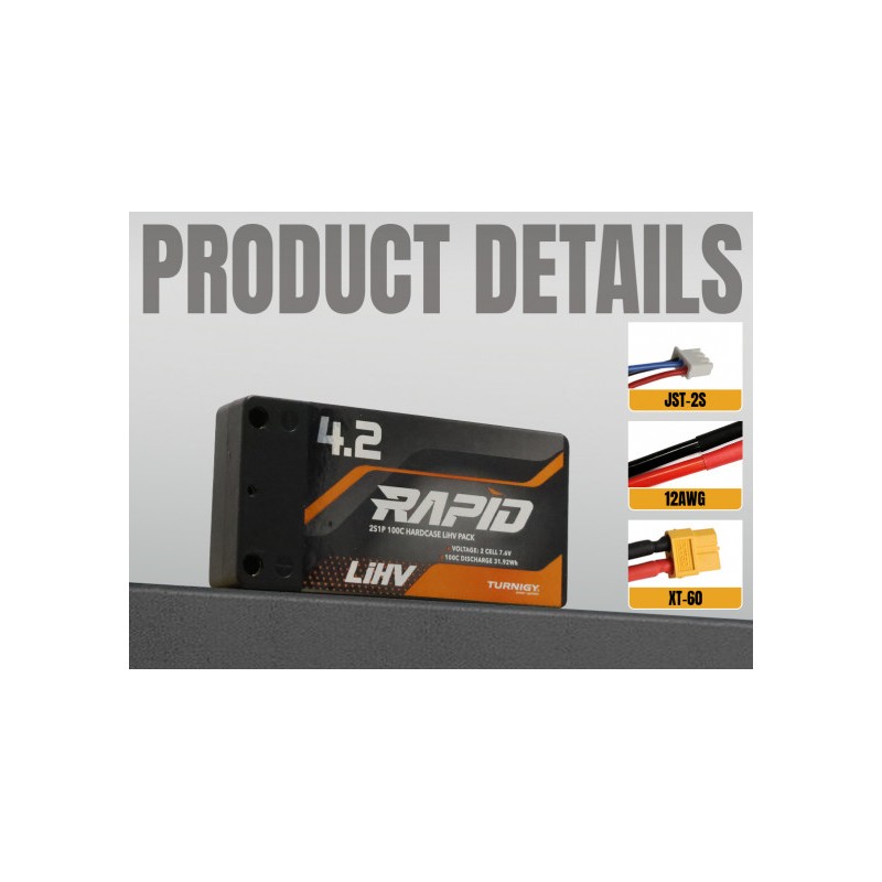Batería de LiPo Turnigy Rapid LiHV de 4200 mAh, 2S, 7,6 V, 100 C, carcasa rígida corta con conector de bala de 5 mm a XT60 para coches RC