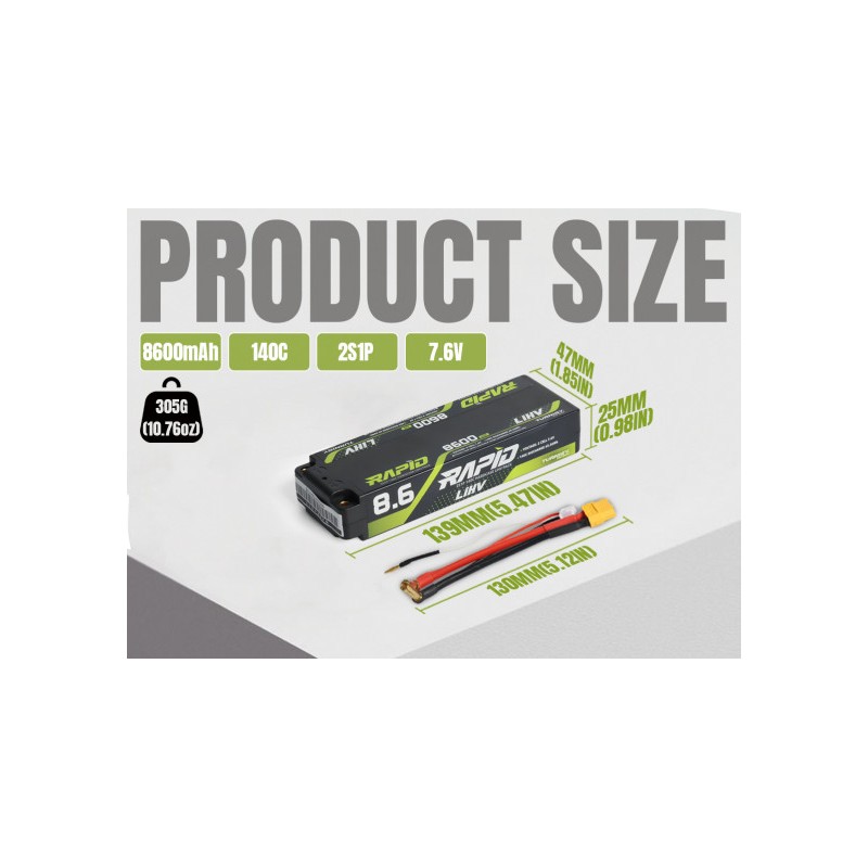 LiPo de alto voltaje de 7,6 V para coches RC. Su capacidad de 8600 mAh ofrece una mayor autonomía. Construcción ligera con centro de gravedad bajo. ¡Ideal para disfrutar de la emoción de las carreras y las carreras de alto rendimiento!