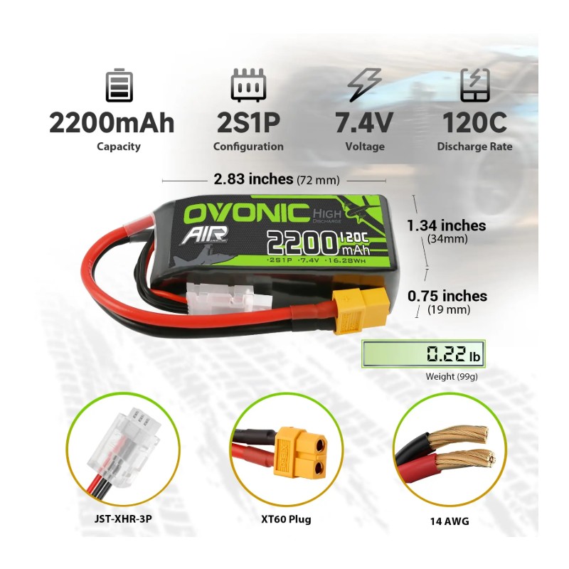 OVONIC 2s Lipo Batería 7.4V 120C 2200mAh Paquete corto con XT60Plug