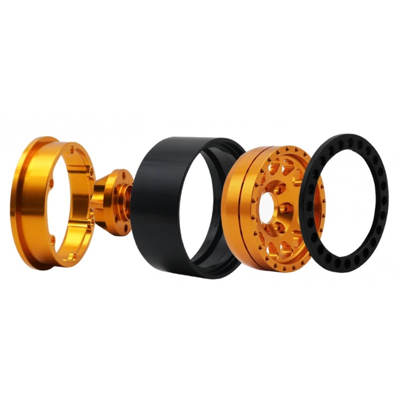Fabricado en aleación metálica de alta calidad, duradero. Diseño Beadlock que mejora la conexión entre la llanta y la rueda. Fácil de instalar y compatible.