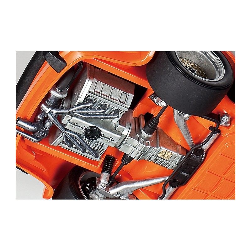 Este famoso coche de carreras se abre camino en la línea de coches deportivos a escala 1/24 de Tamiya, habiendo aparecido también en la serie a gran escala 1/12 en 1976. Con la atención al detalle que uno espera de los modelos de Tamiya, este modelo reproduce fielmente los guardabarros ensanchados del coche y el gran alerón trasero, el interior con jaula antivuelco e incluso la parte inferior del chasis. Las ruedas chapadas en metal están equipadas con neumáticos lisos de goma, y el parachoques delantero y la malla del capó del motor se recrean utilizando piezas fotograbadas, mientras que se utilizan transferencias de metal para los espejos del automóvil. ¡Todo se suma para un modelo muy preciso!