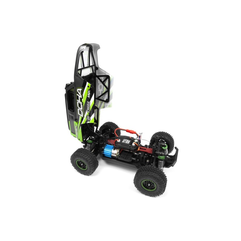Presentamos el Camión del Desierto DOHA a escala 1:20, un vehículo todoterreno compacto pero potente de Maverick RC. Este camión 4x4 a escala 1:20 combina las robustas capacidades de los modelos RC más grandes con la comodidad de un tamaño que cabe cómodamente en la mano, ofreciendo una versatilidad sin igual para la exploración todoterreno.