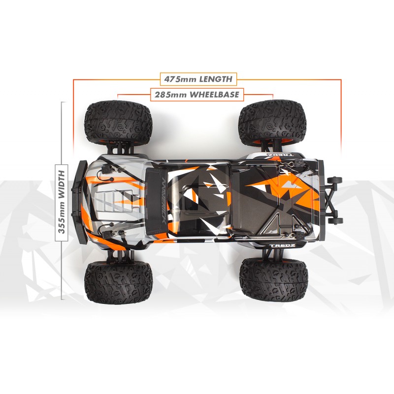 El nuevo controlador Maverick MTX-400 cuenta con un volante real, como los autos de tamaño completo, ¡además de un montón de diales para ajustar el manejo y los controles de tu camión! La forma de la empuñadura de pistola se siente natural en la mano y con solo apretar el gatillo, ¡estás listo y listo! También hay botones para controlar la iluminación: enciende o apaga las luces por completo, ¡o enciende solo las luces de freno! ¡El control está literalmente en tus manos!