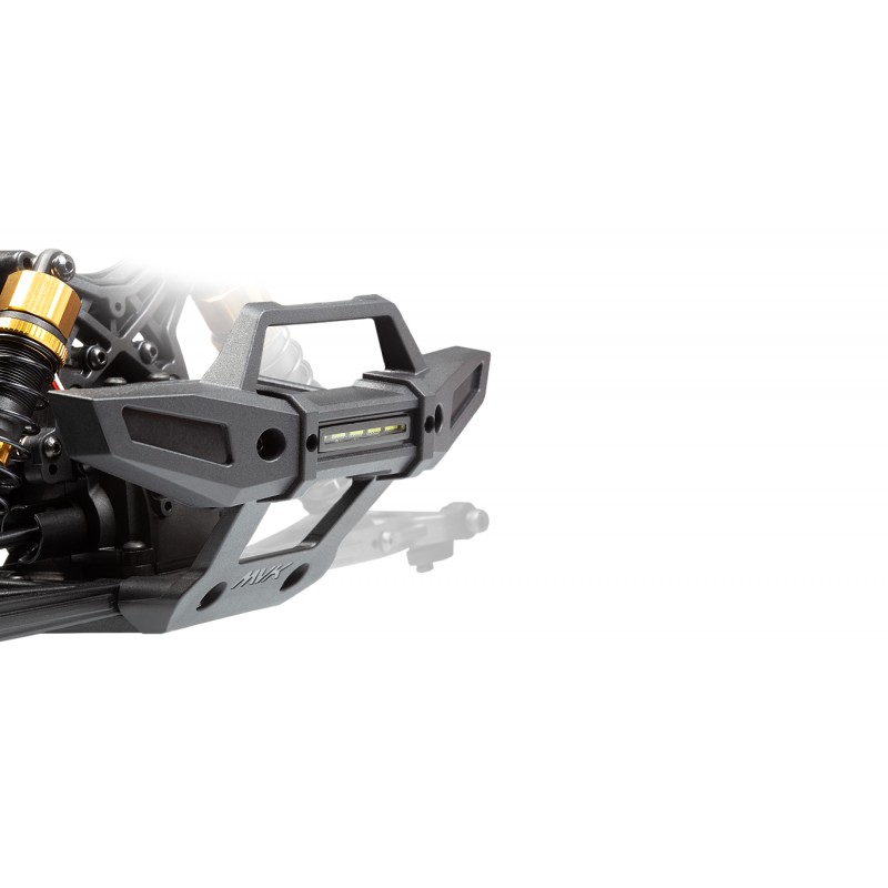 El sólido parachoques estilo protector de cepillo no solo luce fantástico, ¡sino que también es completamente funcional! Mantendrá los daños por choque alejados de ese cuerpo de apariencia increíble, es un asa de transporte práctica, ¡ADEMÁS está equipado con luces LED extrabrillantes que puedes encender y apagar desde el controlador! ¡La placa protectora debajo también te permite deslizarte sobre obstáculos y saltar para seguir adelante y que el Quantum2 MT regrese por más!