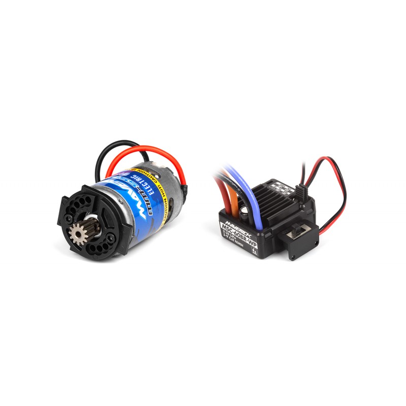 ¡El MSC-60BR-WP es el compañero ideal para el motor con escobillas 550 instalado en el Quantum2 MT! Puede utilizar una variedad de tipos y tamaños de baterías, desde baterías NiMH de 6 a 7 celdas o baterías 2S. Está equipado con un enchufe XT60 y se incluye un adaptador de enchufe para permitirle usar baterías apropiadas equipadas con el popular enchufe RC blanco. ¡También es resistente al agua, por lo que es ideal para atravesar barro y charcos! Tenga en cuenta: la electrónica no está diseñada para funcionar sumergida. Asegúrese de enjuagar inmediatamente la suciedad o el agua salada con agua limpia. Revise el motor para asegurarse de que no haya agua ni suciedad en su interior, rocíe con spray limpiador de motores eléctricos y déjelo secar por completo antes de volver a conducir.