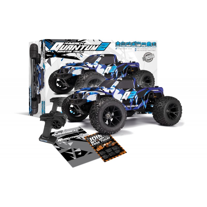 ¡Esta versión de motor cepillado de 12 vueltas y tamaño 550 está disponible en el clásico y genial AZUL Maverick con ruedas negras o en el NARANJA súper brillante con ruedas en naranja fluorescente! Cada Quantum2 MT está equipado con luces delanteras y traseras que funcionan, incluidas luces de freno funcionales, ¡y puedes encenderlas o apagarlas desde el nuevo controlador! ¡Con ruedas nuevas y neumáticos Tredz, el Quantum2 llamará la atención e impresionará instantáneamente a tus amigos!