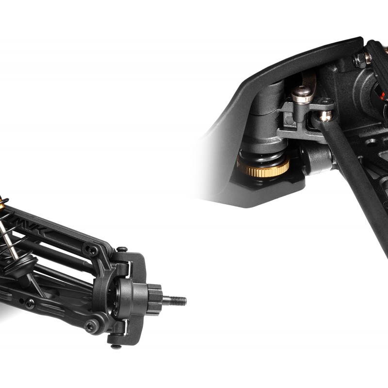 El Quantum2 MT utiliza un buje C y bloques de dirección estilo carrera para brindarte un rendimiento excepcional en una variedad de superficies de conducción, ¡permitiéndote dejar que tu conducción hable por ti! Las piezas de la suspensión utilizan plástico grueso donde es mejor: el brazo de suspensión principal más los enlaces de inclinación y dirección, y los bujes y montantes de alta especificación mantienen los neumáticos apuntados exactamente donde los desea.