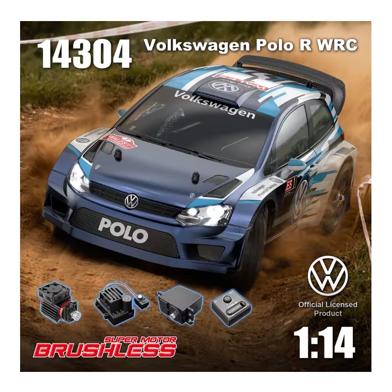 El MJX HYPER GO 14304 Volkswagen Polo R WRC es un ágil coche de rally/drift a escala 1/14 equipado con electrónica moderna y potencia sin escobillas. Su robusto chasis, componentes de transmisión totalmente metálicos y amortiguadores de aluminio lubricados con aceite garantizan una conducción precisa tanto en asfalto liso como en pistas de rally con buen agarre. Con un ESC sin escobillas de 45 A, giroscopio integrado, motor 2845 y un sistema de radio de 2,4 GHz totalmente proporcional, el 14304 ofrece una aceleración potente, una dirección precisa y velocidades de hasta 43 km/h.