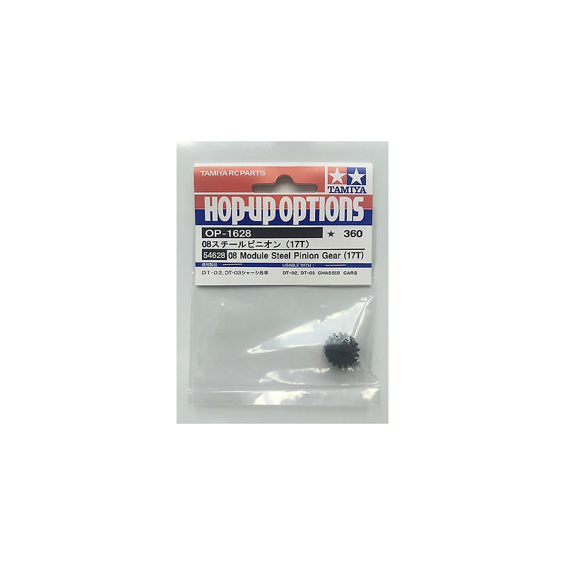 Piñon modulo 08 (equivalente a 32pitch) en acero 17 dientes.
