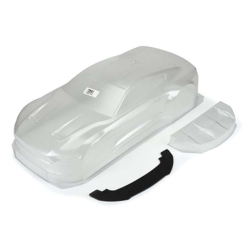 Este Mustang está formado por policarbonato duradero de alta calidad de 1,5 mm de espesor con una película de pintura en aerosol que se puede quitar y pintar, y también incluye una hoja de calcomanías detallada y herrajes para montaje de alerones. Esta carrocería fue diseñada con guardabarros traseros más anchos como un ajuste directo para el Felony™ para despejar los neumáticos 53/107. Funcionará con neumáticos traseros Infraction™, pero para obtener el aspecto y el ajuste óptimos, puede optar por ensanchar la parte trasera de su chasis Infraction™ con neumáticos traseros de serie o usar neumáticos traseros Felony™ con modificaciones en la relación de transmisión trasera. Consulte la pestaña de ajustes para ver la lista de piezas necesarias para estas modificaciones.