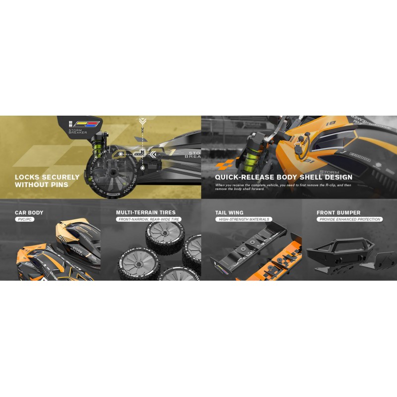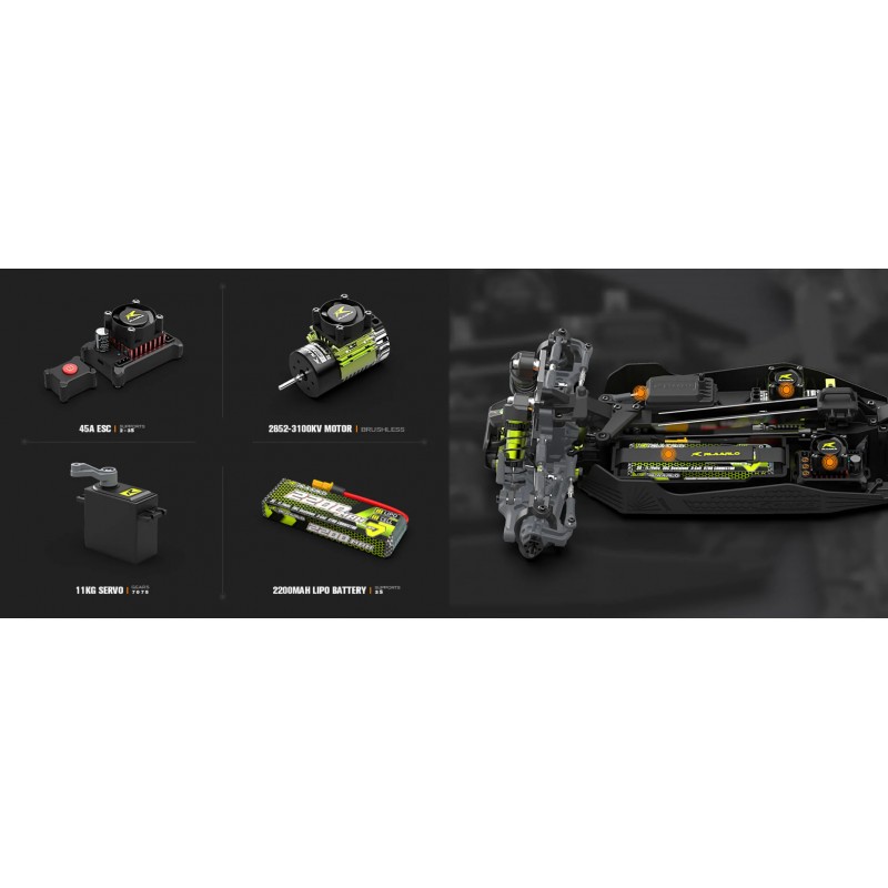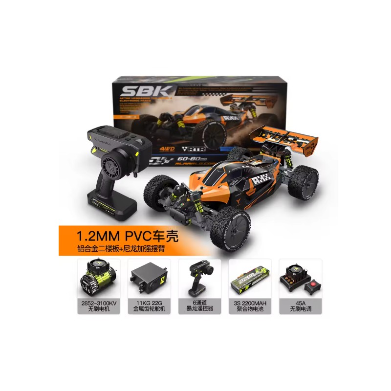 El Buggy SBK10 Metal Version incorpora un motor brushless 2852 (3100 KV) que ofrece una potente aceleración y un rendimiento sostenido a alta velocidad. El ESC de 45 A proporciona un control de potencia preciso, permitiéndote superar a la competencia sin esfuerzo.