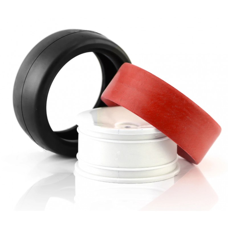 Tanto para asfalto como para moqueta, RUSH ofrece juegos de neumáticos preconfeccionados con diferentes compuestos de goma, durezas shore y tipos de llanta, adaptados de forma óptima a las diferentes condiciones y temperaturas de la pista.