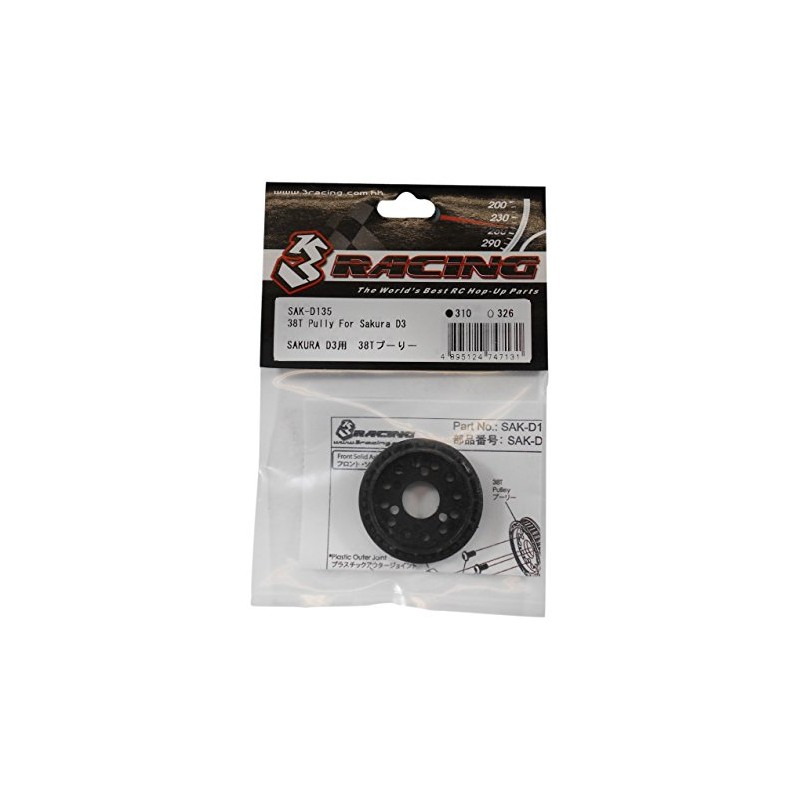 3Racing Sakura polea eje rigido/one-way 38 dientes en plastico.