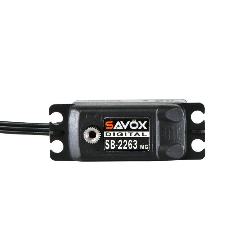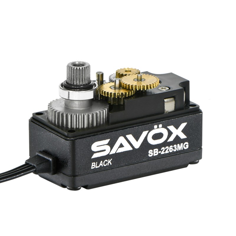 El SB-2263MG-BE es un servo brushless de alta velocidad y perfil bajo que presenta un diseño totalmente negro para un aspecto discreto en coches RC.