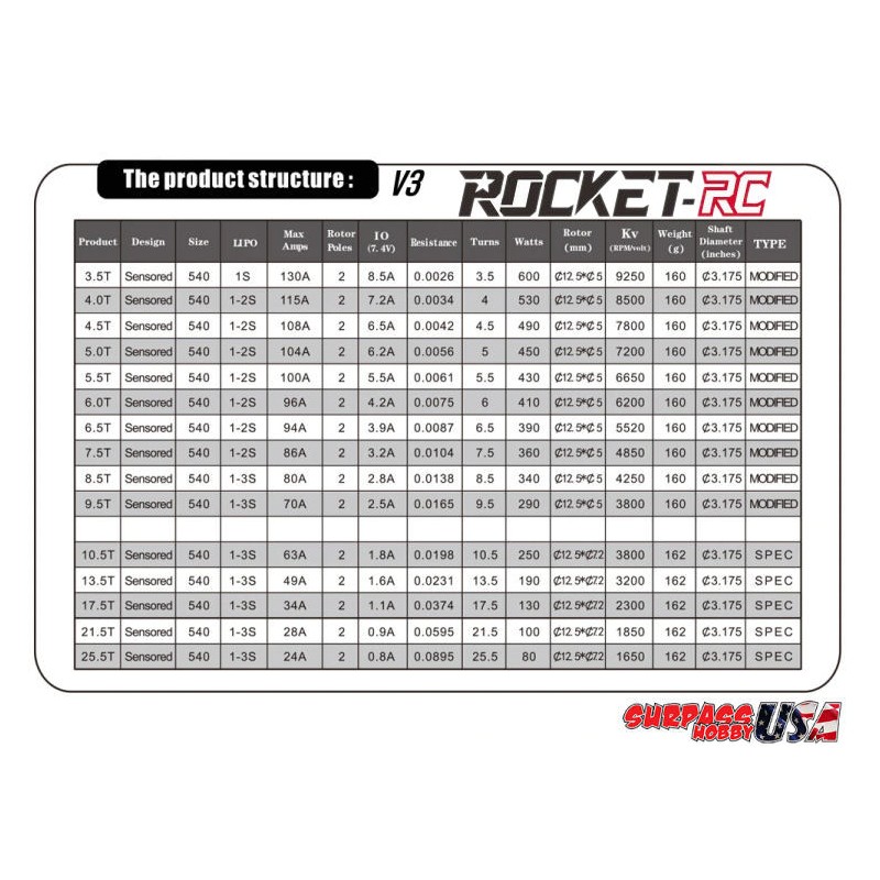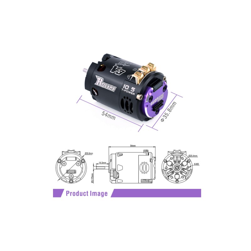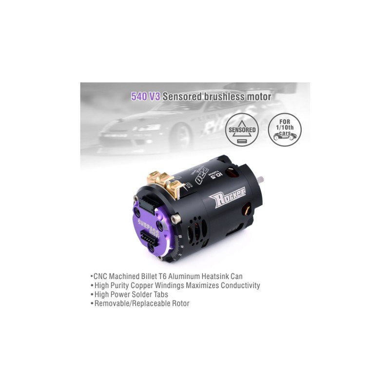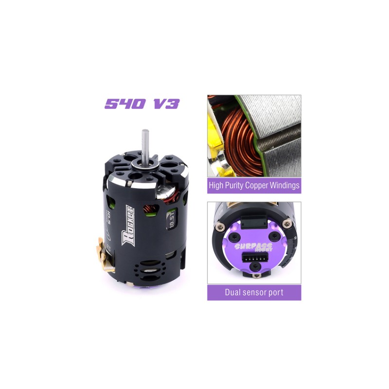 El motor brushless sensores Surpass Hobby Rocket 540 V3 Pro cumple con los requisitos de ROAR (EE. UU.) y las reglas IFMAR.