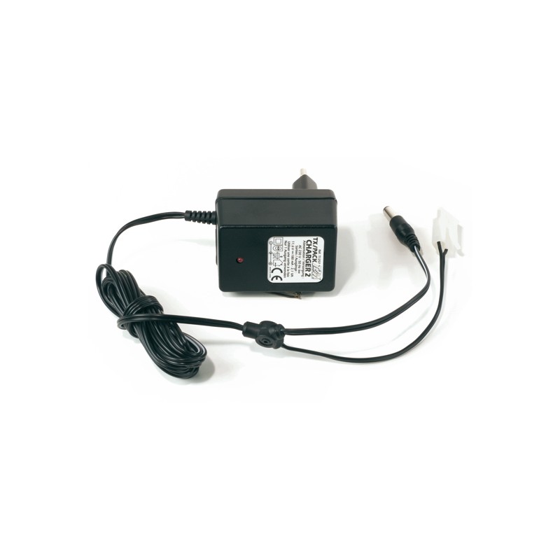 El TX / PACK CHARGER 2 se puede usar para recargar un paquete de baterías de propulsión de 7.2V o baterías de emisión instaladas en el transmisor. Dos salidas: 11,6 V 180 mAh (toma de carga del transmisor) y 7,2 V 180 mAh (paquete de propulsión enchufe Tamiya). Una salida que se puede utilizar a la vez.