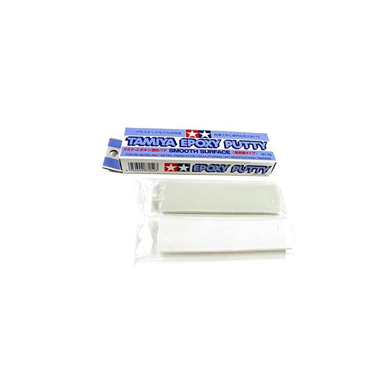 Masilla Epoxy de dos componentes (25 gramos) de superficie lisa. Esta masilla está formada por dos barras de masilla que al mezclarse empiezan a solidificarse. Mientras endurecen se pueden tallar y esculpir todo tipo de formas, rellenar huecos y grietas, realizar transformaciones o piezas desde cero, etc. Una vez seca permite el uso de lijas y herramientas de pulido.