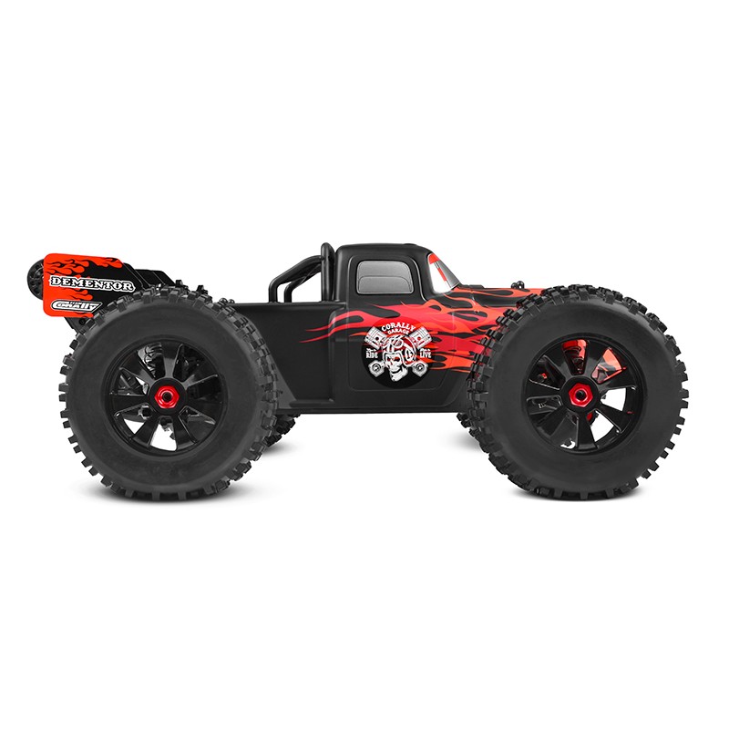 El camión de acrobacias Team Corally Dementor cuenta con un conjunto completo de dispositivos electrónicos resistentes al agua, por lo que está listo para conducir a cualquier lugar que desee, en cualquier momento que desee. El controlador de velocidad electrónico no solo es resistente a las salpicaduras de agua y barro, sino que el servo de dirección y el receptor también están protegidos de los elementos mediante recubrimientos especiales aplicados en la fábrica. El receptor está además protegido dentro de una caja de electrónica que mantiene el polvo y el barro alejados de las conexiones eléctricas. No hace falta decir que solo hemos utilizado rodamientos de bolas sellados con goma. ¡Puedes llevar el Dementor a cualquier lugar! (Tenga en cuenta: ningún vehículo RC debe operarse sumergido en agua o lodo. Tenga cuidado al conducir en condiciones extremas, y debe realizarse un mantenimiento adecuado, como limpieza y lubricación, después de conducir en lodo, agua o cerca de agua salada).