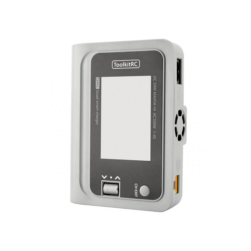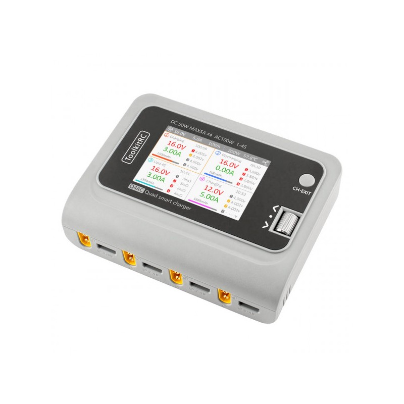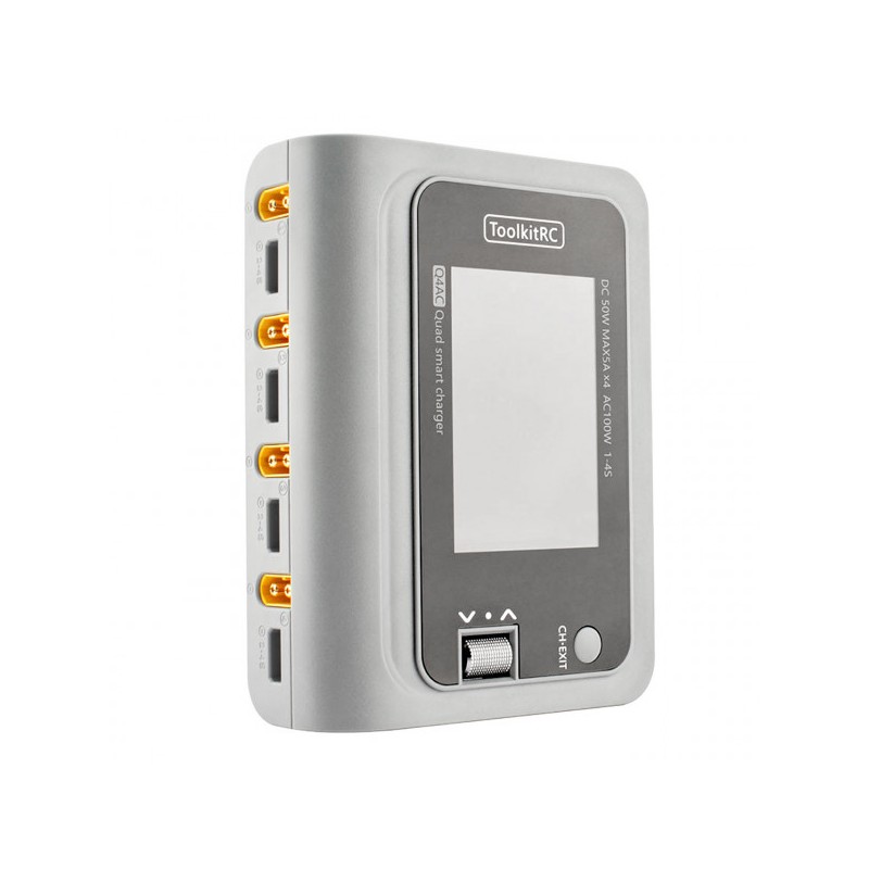 El Q4AC es un cargador de cuatro canales con función de balanceador y pantalla IPS. La navegación por el menú a través del rodillo hace que la operación sea sencilla y directa.