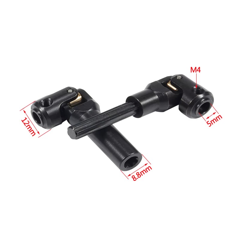 Transmision cardan universal en dos piezas construidas en acero de alta calidad para acoplar a ejes de 5mm.