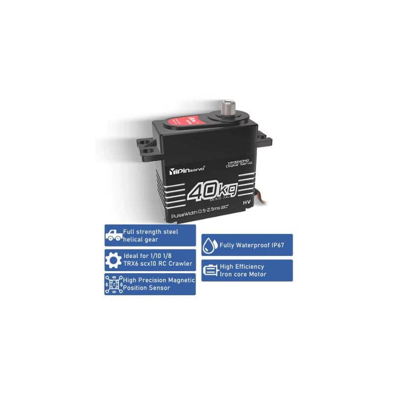 Servo Digital de 40KG, Alto Torque, Engranaje Metálico, IP67 Impermeable, 180º 25T